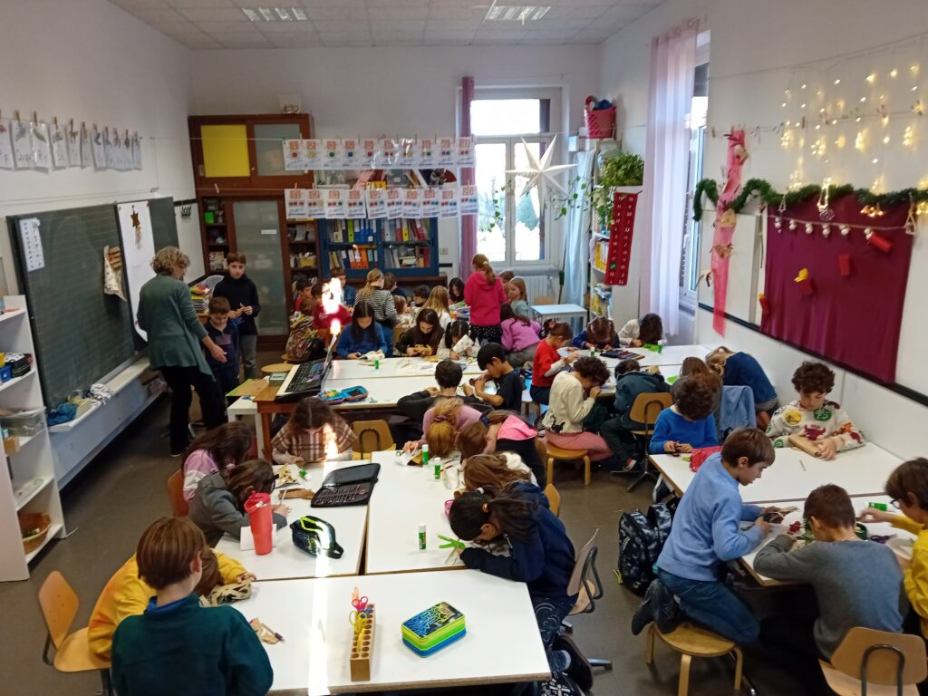Hier an der Schweizer Schule Rom gehen die Vorbereitungen weiter… Die beiden fünften Klassen der Primarschule haben zusammen mit der ersten Klasse dieses schöne „Weihnachtsbastelprojekt” durchgeführt. Ein lustiger und fröhlicher Anlass, der Gross und Klein an einem besonderen Nachmittag zusammengebracht hat.