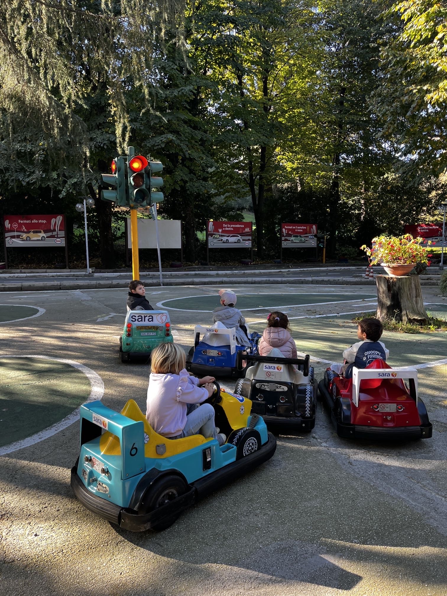 In una splendida giornata autunnale, le tre classi della scuola dell’infanzia hanno potuto visitare insieme il percorso Scuola del Traffico nel quartiere Eur.