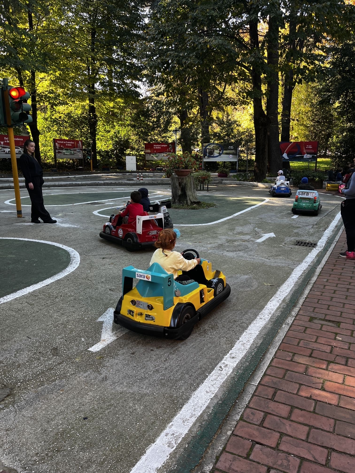 Durante la visita guidata del parco i bambini hanno imparato le regole della strada e a riconoscere diversi segnali stradali. Particolarmente divertente è stato guidare le piccole auto elettriche colorate sul percorso. Lì i bambini hanno imparato a prestare attenzione gli uni agli altri, proprio come nel traffico reale.